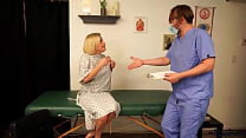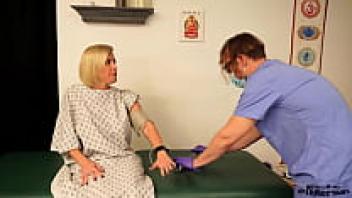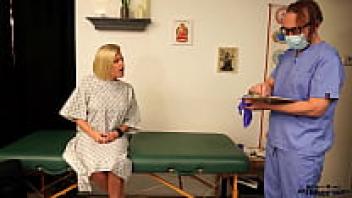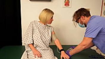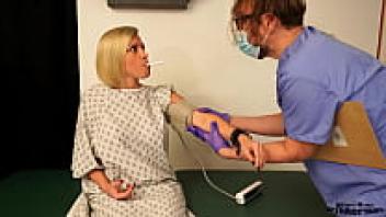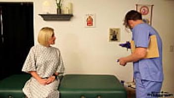 A teen experiences a powerful orgasm and a massive cumshot on their tits after a fake doctor's examination.