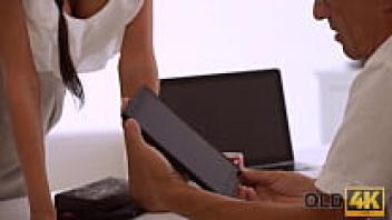 OLD4K. Instead of focusing on a crucial job, the elderly guy exercises his slim secretary.