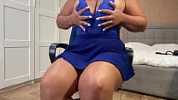 In a miniskirt, a seductive stepmother masturbates her creamy pussy.