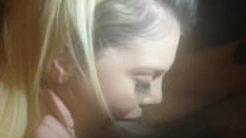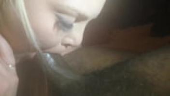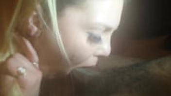 An interracial big cock sucking and cum facial session. Guy with a Hung Black Face and a Curvy Blonde: Those who enjoy Pussy and the BBC Blowjob