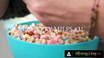 Victoria Lobov, a huge-titted cougar, has filthy morning sex with an eighteen-year-old man.