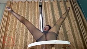 A lovely woman in heels and panties. Striptease at the round table C3