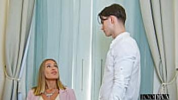 A gorgeous, attractive blonde enjoys riding and swallowing students' dicks. Greys, Angelika