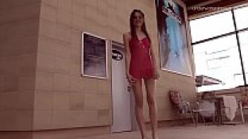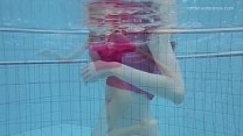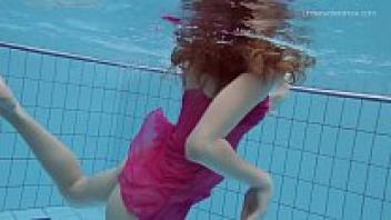 Hot Russian females swimming in a pool.