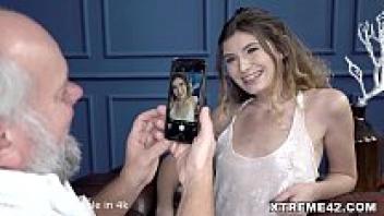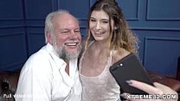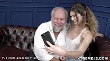 Grandpa swallows and groans with pleasure at the 18-year-old girl he loves.