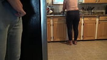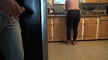 I nearly got caught masturbating and cumming on my Turkish stepmother's enormous ass.