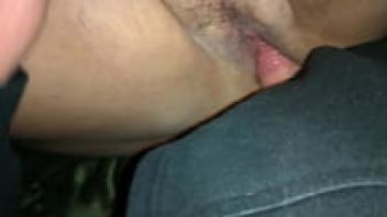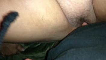 Close-up of a hairy, pussy schoolgirl wearing a stepdad bid cock creampie