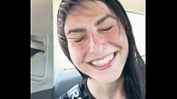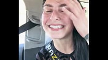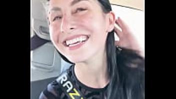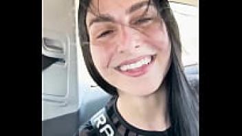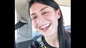 STEPMOM adores getting puffed in front of a large cucumber in front of the car.