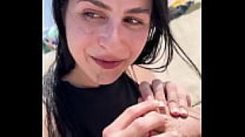 Gorgeous brunette climping in public while masturbating on the beach