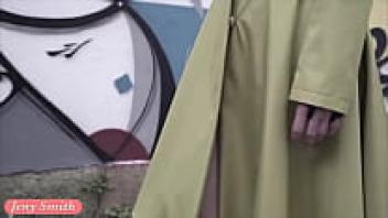 A self-reliant woman. Jeny Smith in public wearing pantyhose without underwear