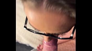 Unprofessional blowjob: a cumshot facial performed on glasses
