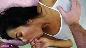 Facial and Love for an Asian Girlfriend Wearing a Police Outfit