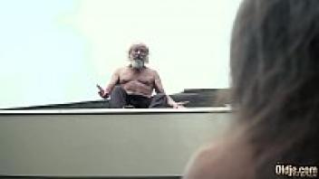 Grandpa swallows and groans with pleasure at the 18-year-old girl he loves.