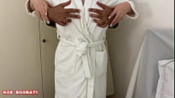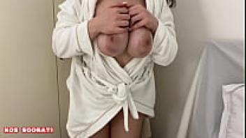 A curvaceous Japanese girl gets dressed after taking a hot shower.