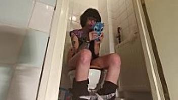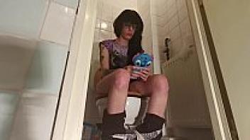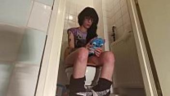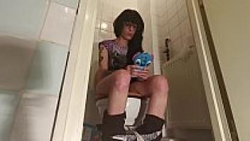 A teenage girl playing on her phone while urinating (PT1 HD)