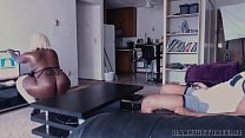 Luna, the curvaceous black beauty, takes a stiff white cock.
