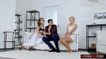 Fake Hostel Beautiful Brunette goes on two large European cocks.
