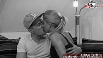 At an amateur gangbang party, a slender German adolescent was repeatedly inseminated.
