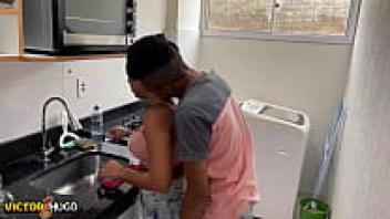 I'm having fun in the kitchen with my wife.