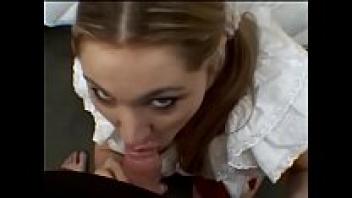 After receiving a warm blowjob, a pigtail teen gets come on her face.