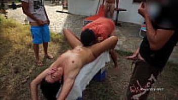 Defenceless! TIED UP! MEGA SPRAY PARTY WITH OPEN END!