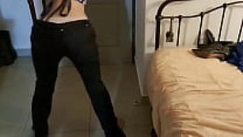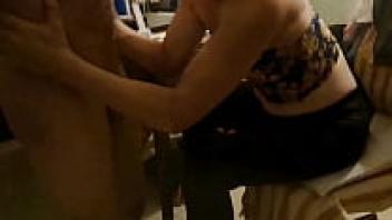 1090 (Red 01): Doggystyle, POV, deepthroat, rimming, white babe, many satin tanga, black leather pants