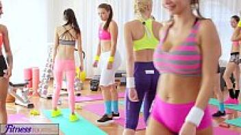 Exercise Rooms After her sweaty workout, the teen beauty receives affection.