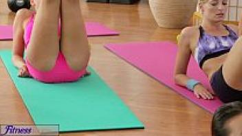 FitnessRooms Numerous orgasms for gym nymphs with black hair