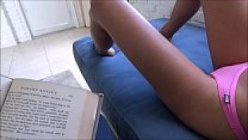 On camera, a gorgeous brunette spreads her legs wide.