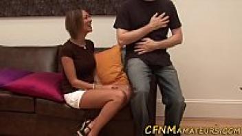 In their college uniforms, CFNM HJ and BJ MILF suck older guys.
