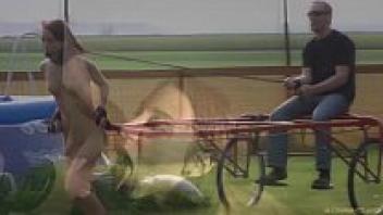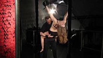 To satiate her fetish, a bondage bdsm female is subjected to severe punishment.