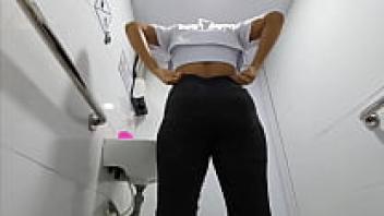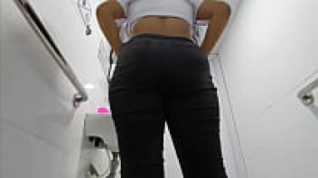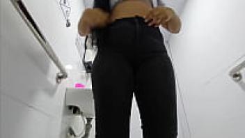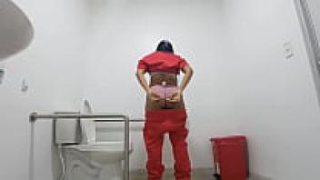 Big ass is captured by an amateur camera in a hospital restroom. A Latina nurse