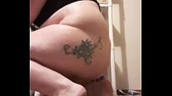 Hairy BBW Cameron Skye shoves a dildo in her ass.