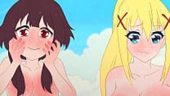 Konosyba: A train was staged by girls with penises (orgy) Aqua gives Darkness and Megumin penises! Cartoons, Hentai, and Parody