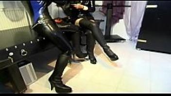 Lesbian women wearing high heels and latex