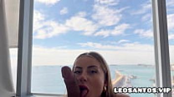 I cummed in my girlfriend's mouth after she gave me a blowjob. POV. Then, wearing a large ass upskirt and an anal plug, she walks outside sans underwear. fetish and oral sex with a Russian couple.