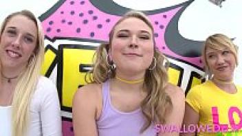 SWALLOWED Zelda, Roxy, and Alyssa gagging on a rock-hard dick