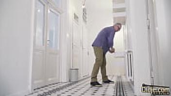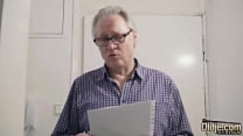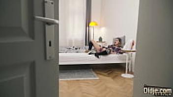 Grandpa shows love to a teen who is discovered using a sex toy and she swallows his sperm.