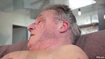 elderly vs young porn: the girl licks the elderly man's cock and swallows cumshot.