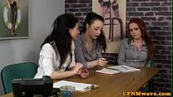 Sub is punished by cocksucking cfnm chicks.