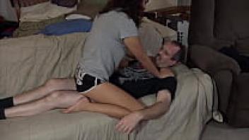 During the time that my husband was away from the house, I will repeatedly use the face of my stepson. Face-sitting video of the MILF