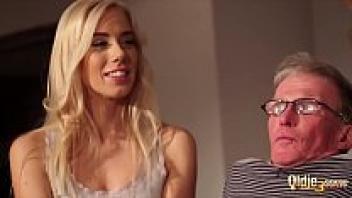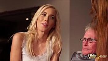 Miss Melissa, a gorgeous blonde girl, gives a pervert grandfather her brand-new pussy.