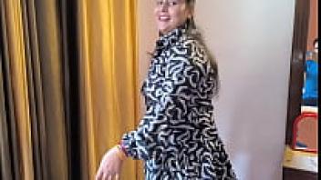 A skinny girl falling in love in a hotel room