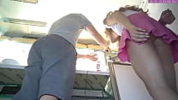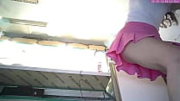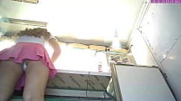 A foolish eighteen-year-old bitch wearing a pink miniskirt with a hidden voyeur camera upskirt