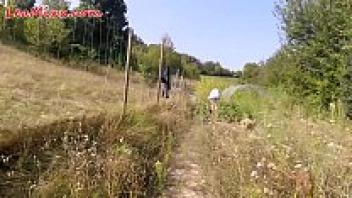 MILF, who is early in her pregnancy, goes naked outside. Natural female beauty in nature. Amateur fetish.