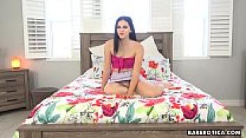 Scarlett Bloom, a girl with a shaved pussy, masturbating in 4K