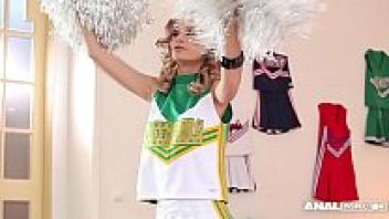 Erica Fontes, an anal addict, is DP&'d while dressed as a cheerleader.
