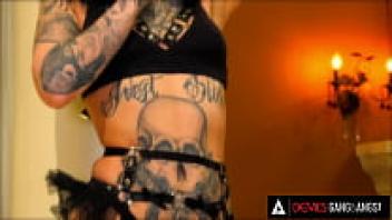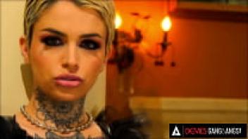 DevilsGangbangs: Four Big Cocks Manhandle Goth Cutie Leigh Raven's Tight Little Pink Asshole