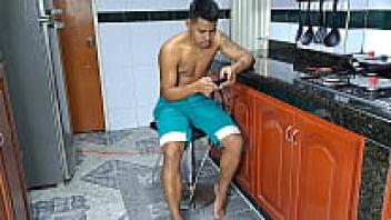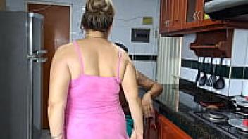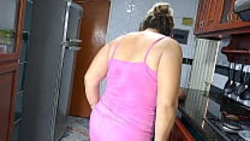 Cum in her underwear and a cherished stepmother in high boots in the kitchen
