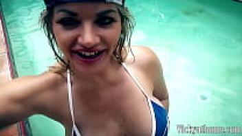 POV: In a pool, seductive blonde Vicky Vette sucks a rock-hard cock!